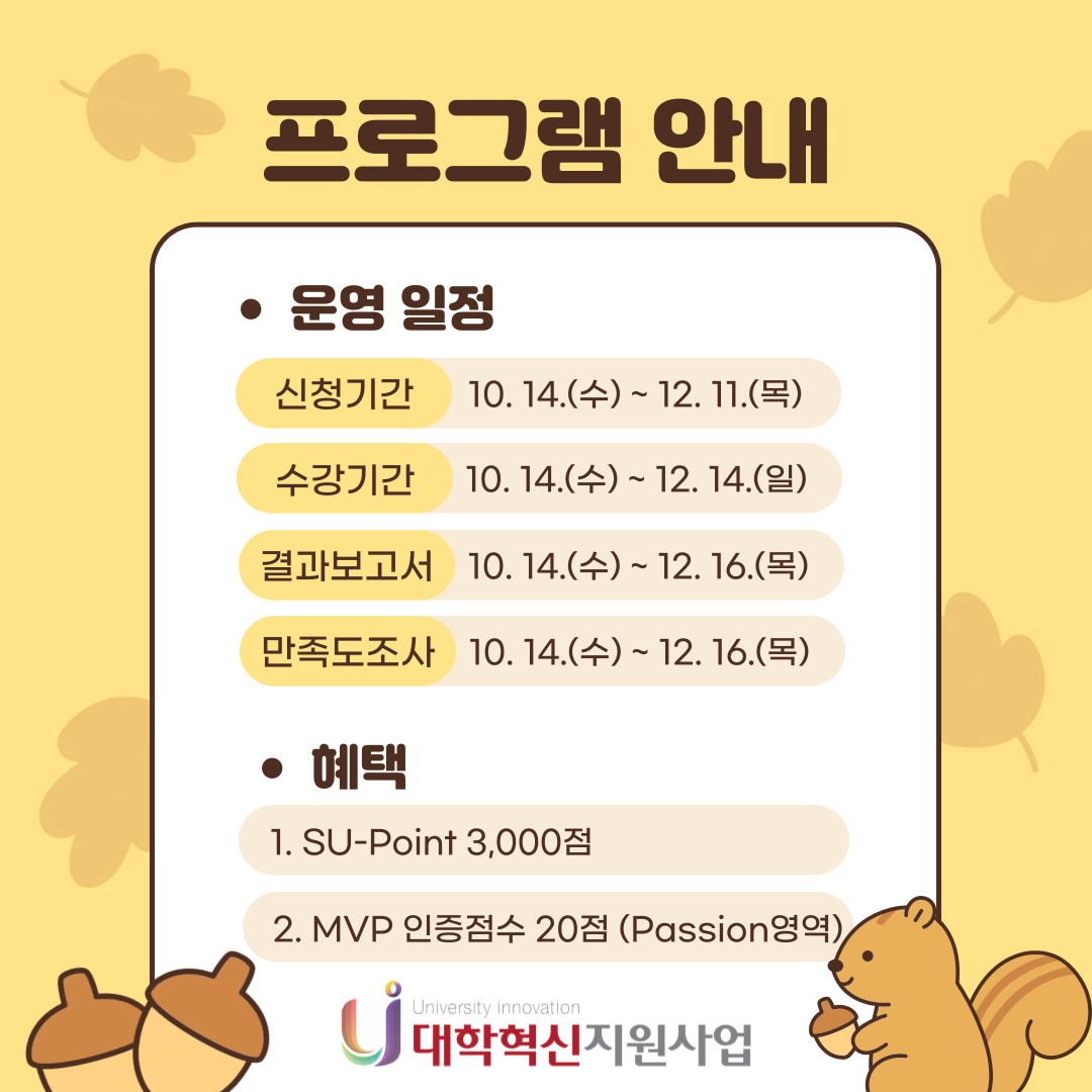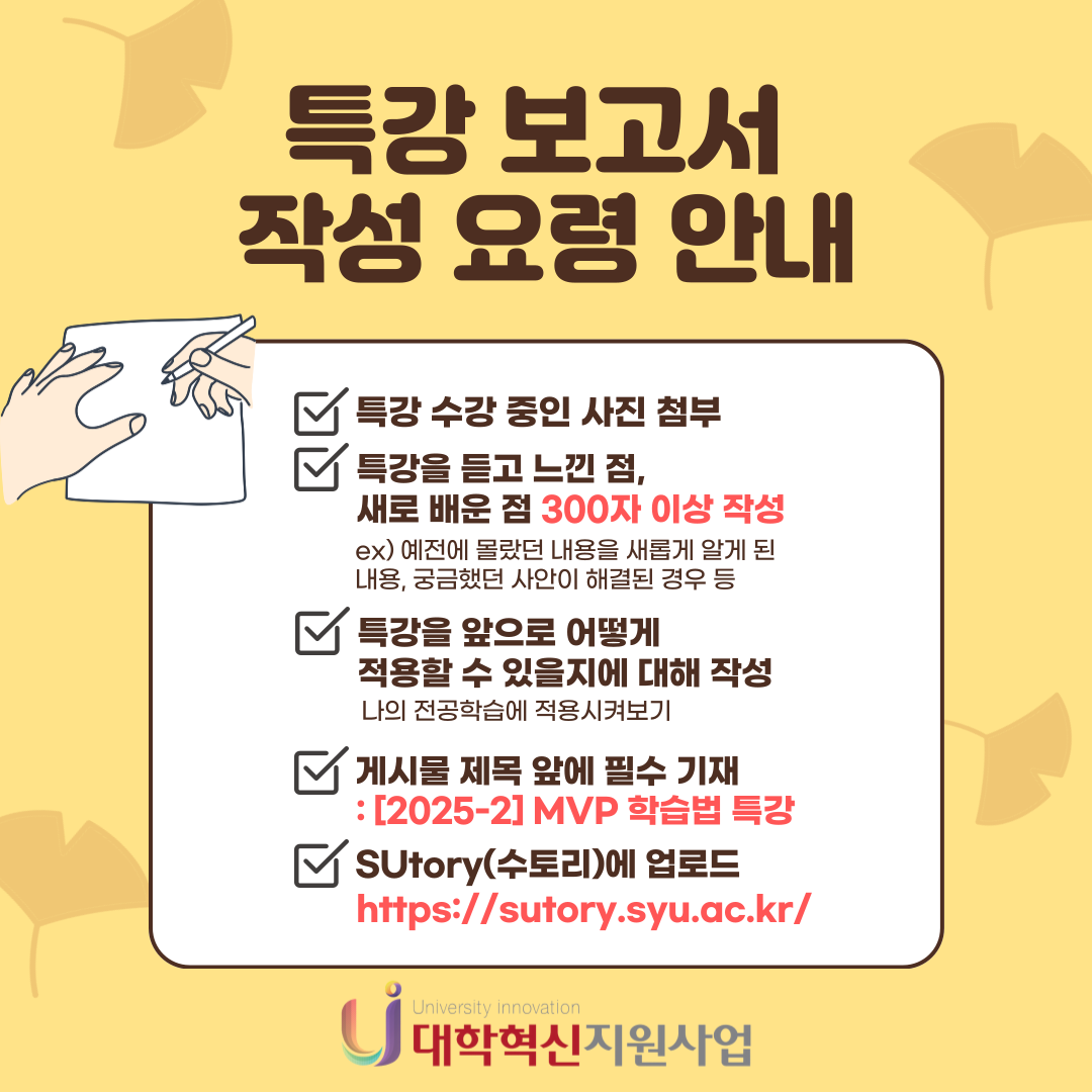 MVP 학습법 특강 안내 – 노션을 활용한 스마트한 대학생활 본문 목록 이전글2025-2 콩콩마켓(삼육동 플리마켓) 25.11.03 다음글2025 마을 in(人) 마을 Project 참가 안내 25.11.03