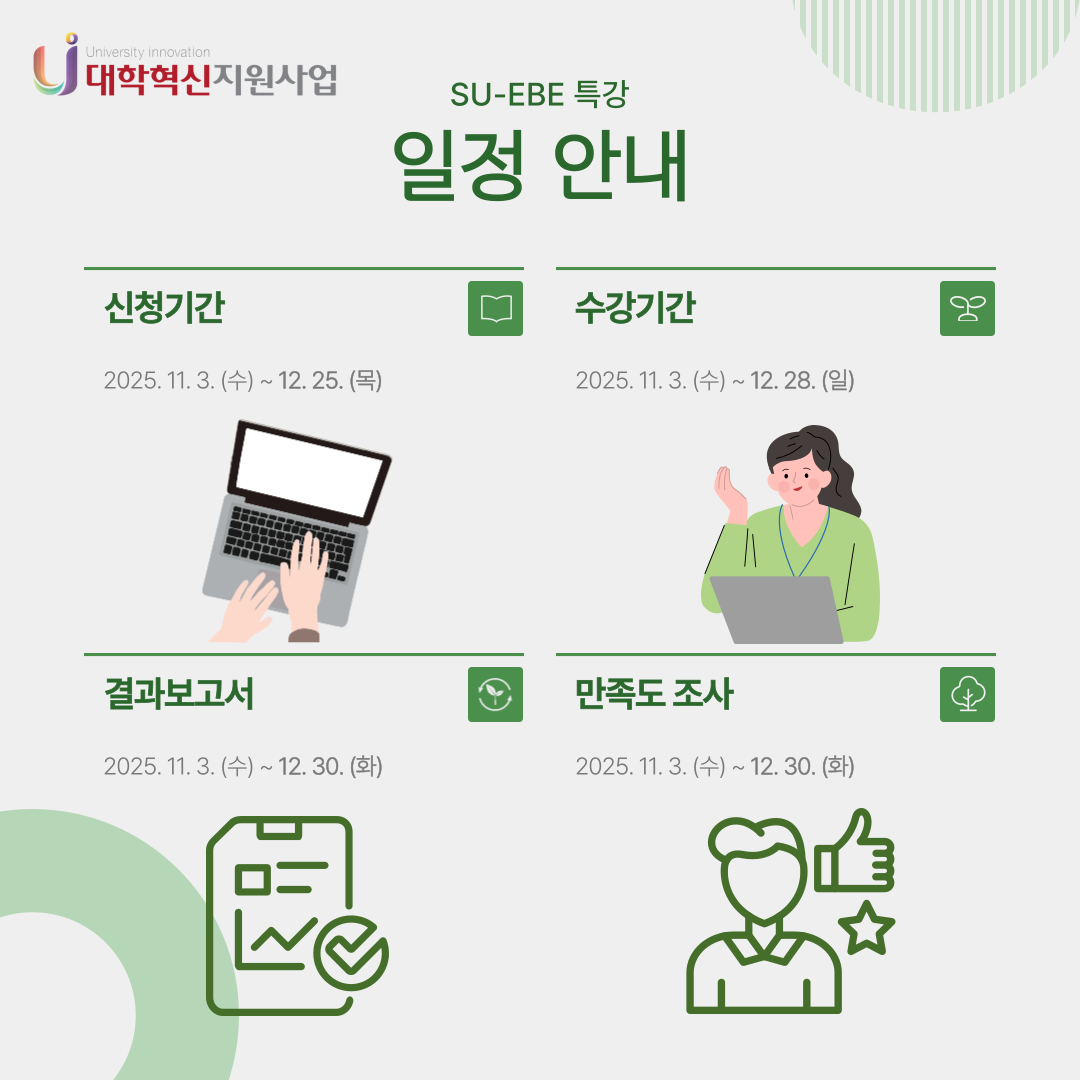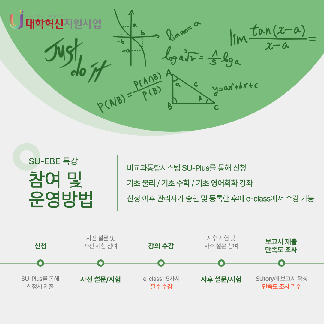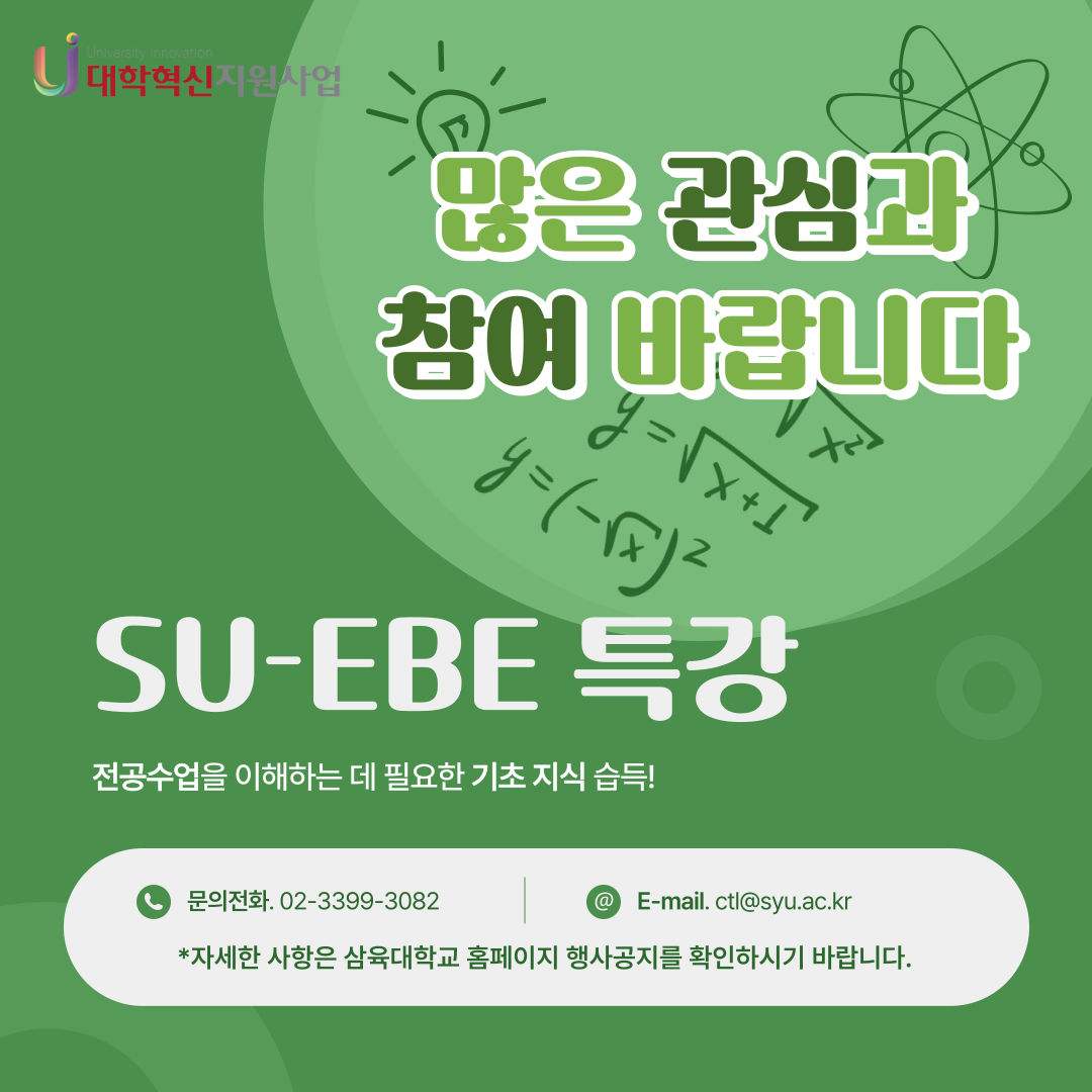 대학생을 위한 기초물리/기초수학/기초영어회화 SU-EBE 특강 본문 목록 이전글2025 학과연계 경진대회 아이디어 모집 25.11.04 다음글2025-2 콩콩마켓(삼육동 플리마켓) 25.11.03