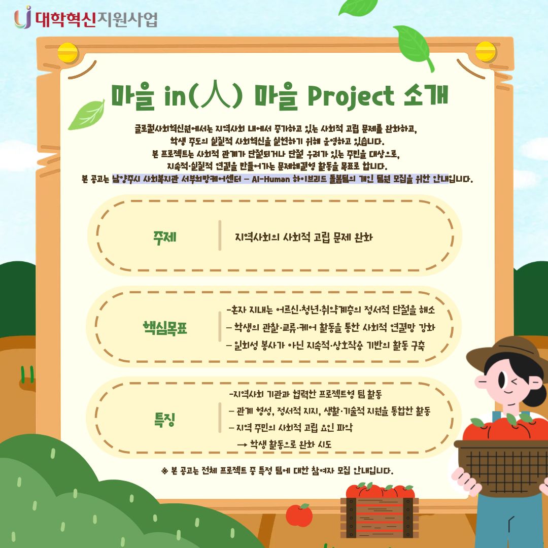 동계 마을 in(人) 마을 Project(국내봉사대) 본문 목록 이전글{삼육스케치 vol.3 : 콩콩마켓} 25.12.10 다음글기말대비 MLST-Ⅱ 학습전략검사 이벤트 안내 25.12.04