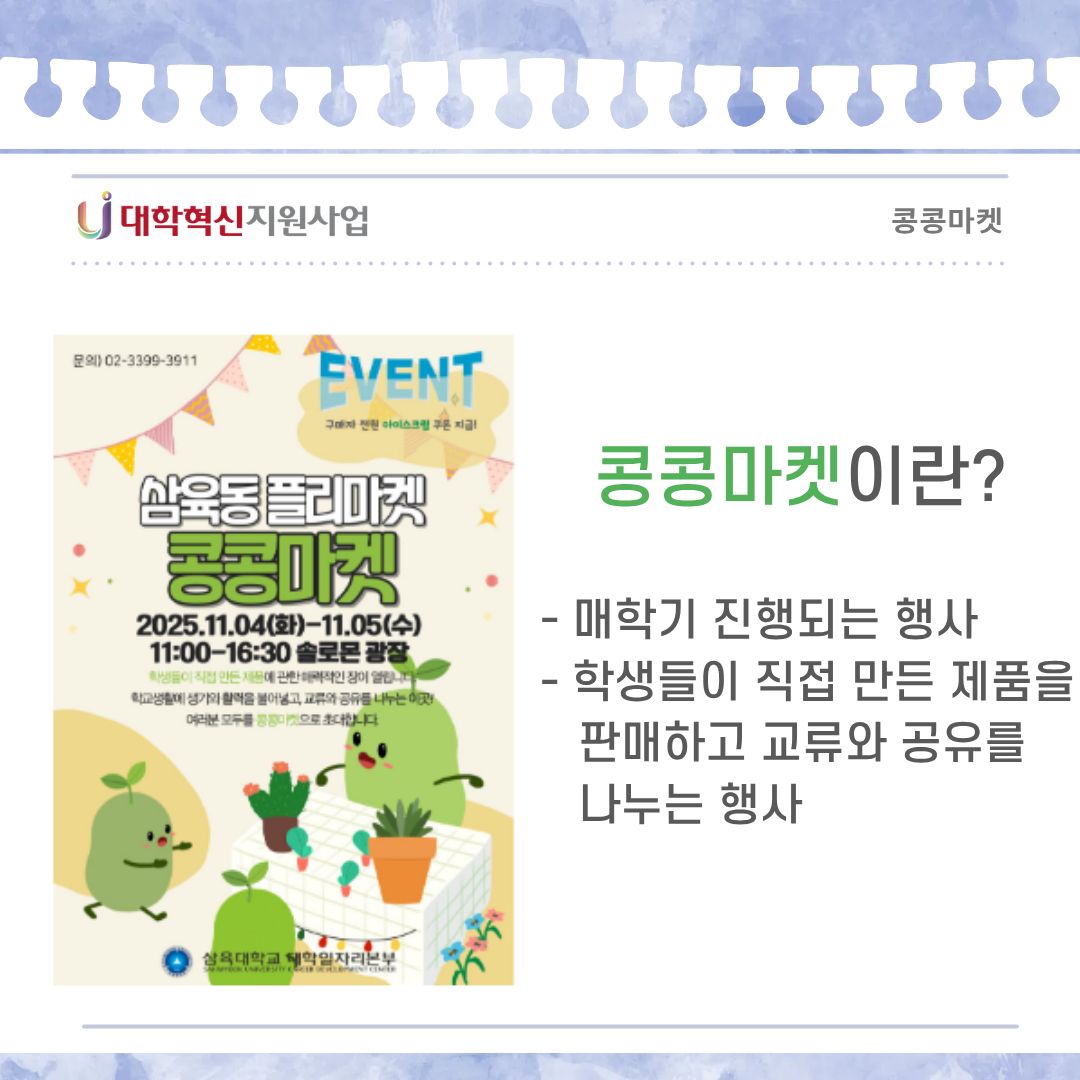 {삼육스케치 vol.3 : 콩콩마켓} 본문 목록 이전글2025년 동계 노원대학 연합 창업캠프 25.12.10 다음글동계 마을 in(人) 마을 Project(국내봉사대) 25.12.05