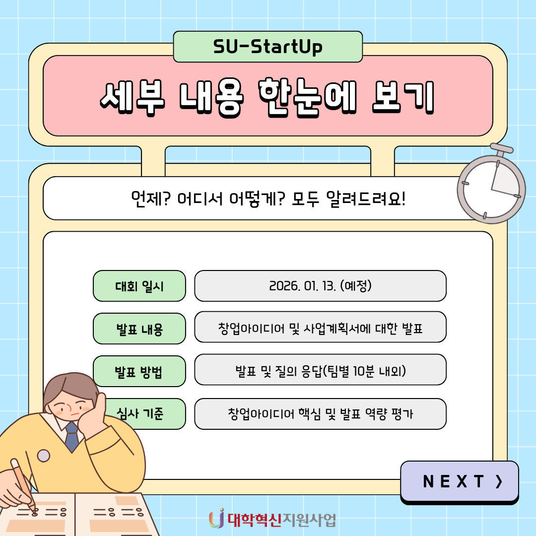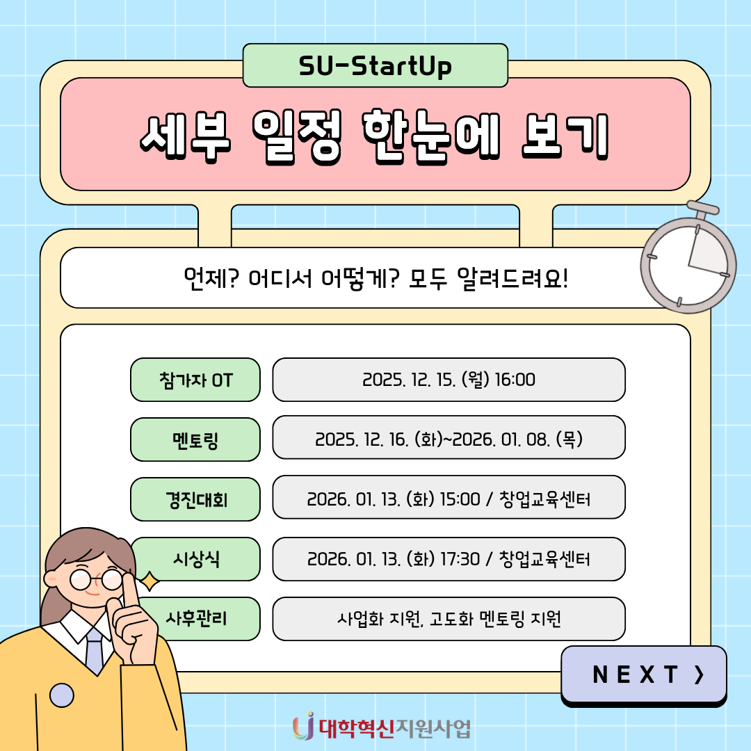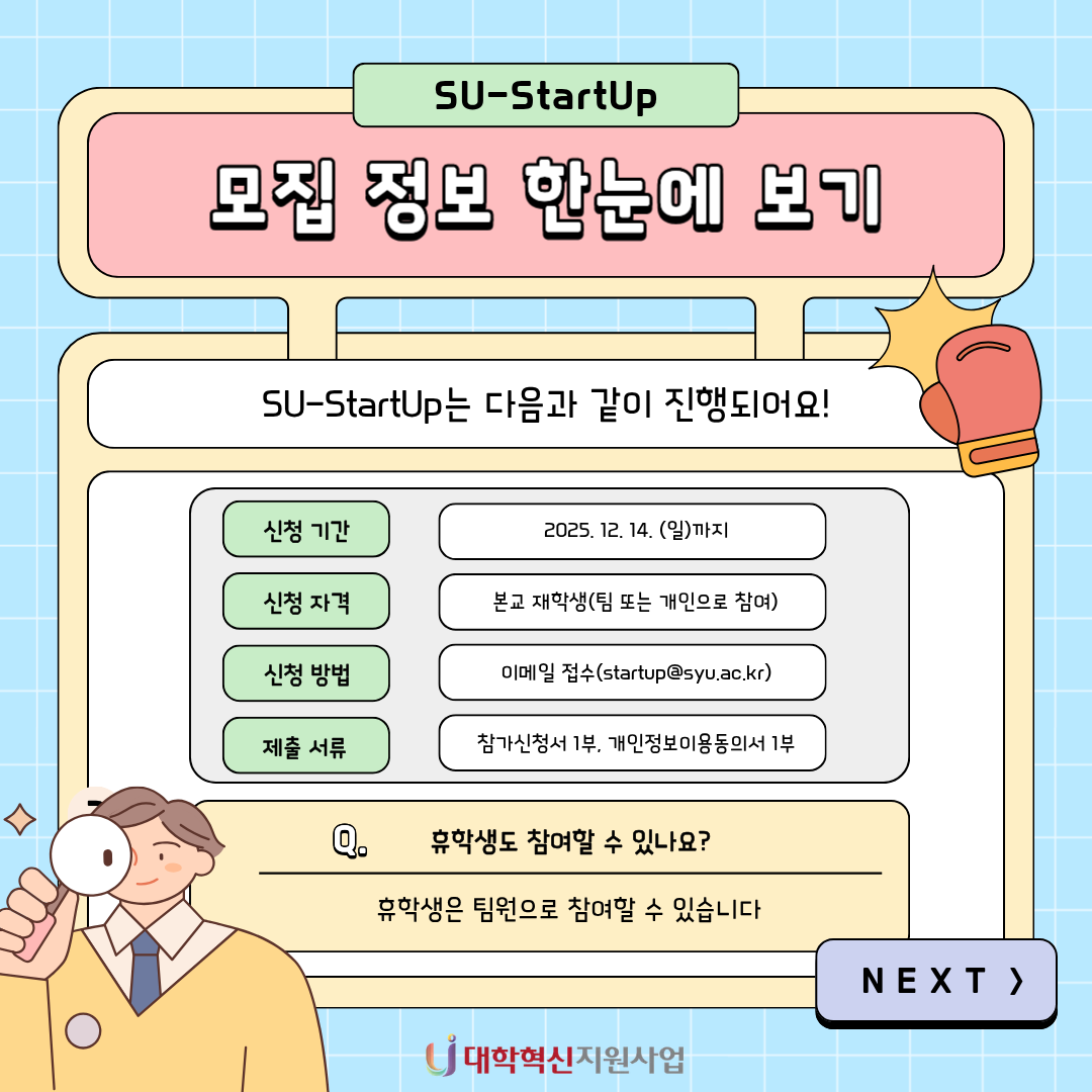 2025-2 SU-StartUp 창업아이디어 경진대회 본문 목록 이전글{삼육스케치 vol.2 : 내 서재를 소개합니다} 25.12.01 다음글기초 개념이 흔들린다면 지금이 바로 RESTART! (2-6학년 기초학력진단 및 AI 보완학습 안내) 25.11.17