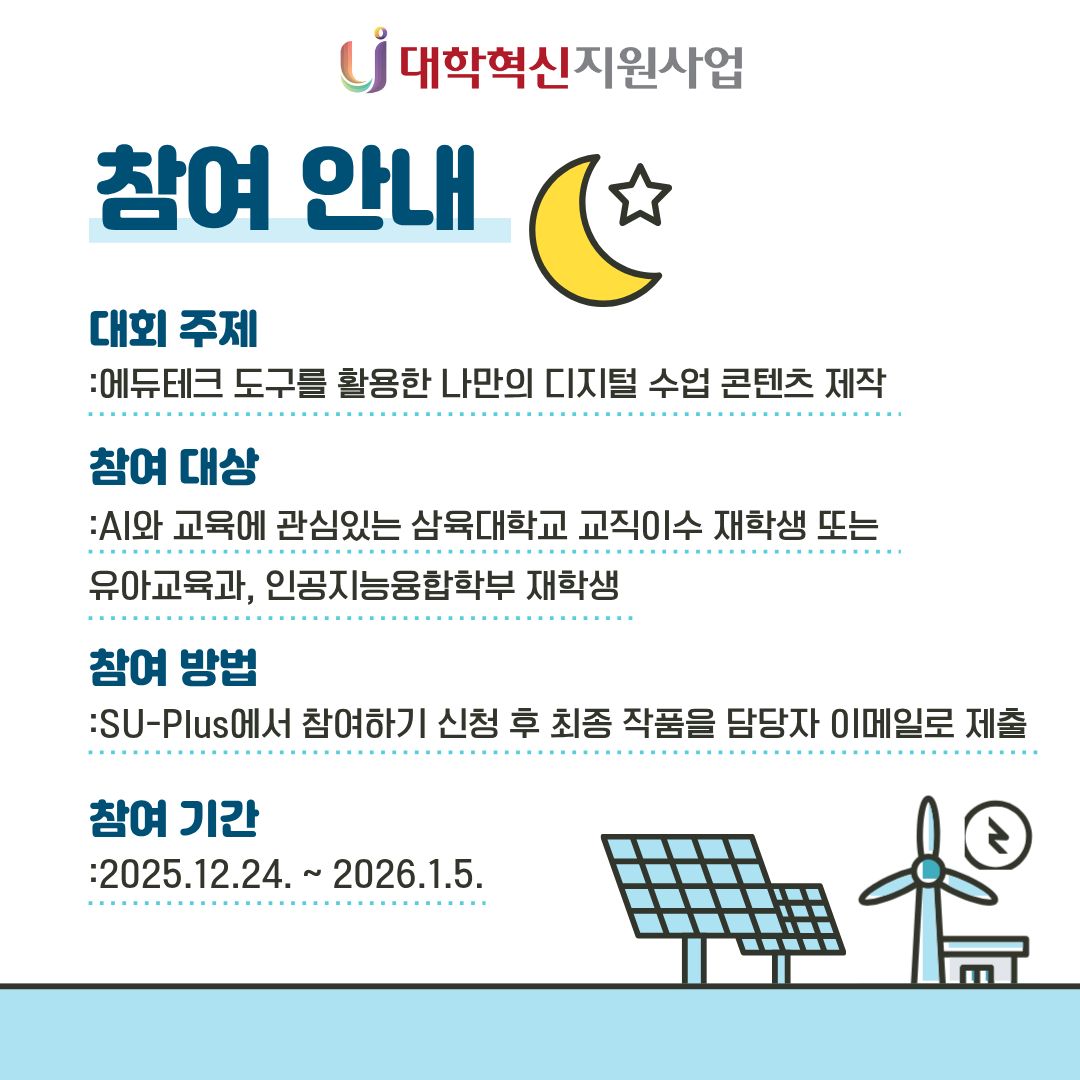 에듀테크 활용 미래교육 경진대회 본문 목록 이전글[창업-Maker 프로그램] 나만의 애착식물 만들기 (난 코케다마 클래스) 26.01.02 다음글{삼육스케치 vol.5 : 2025-2 취업동아리} 25.12.26