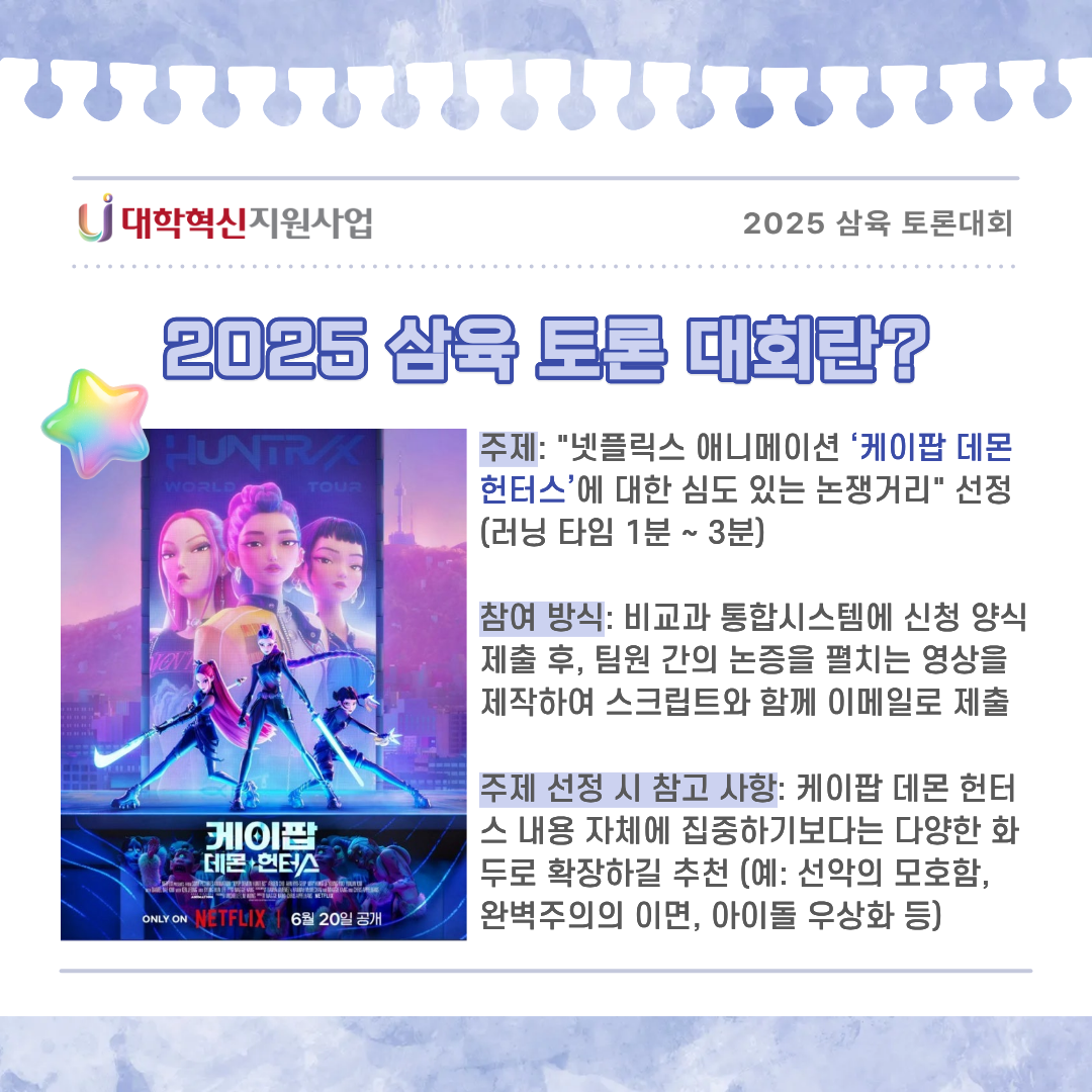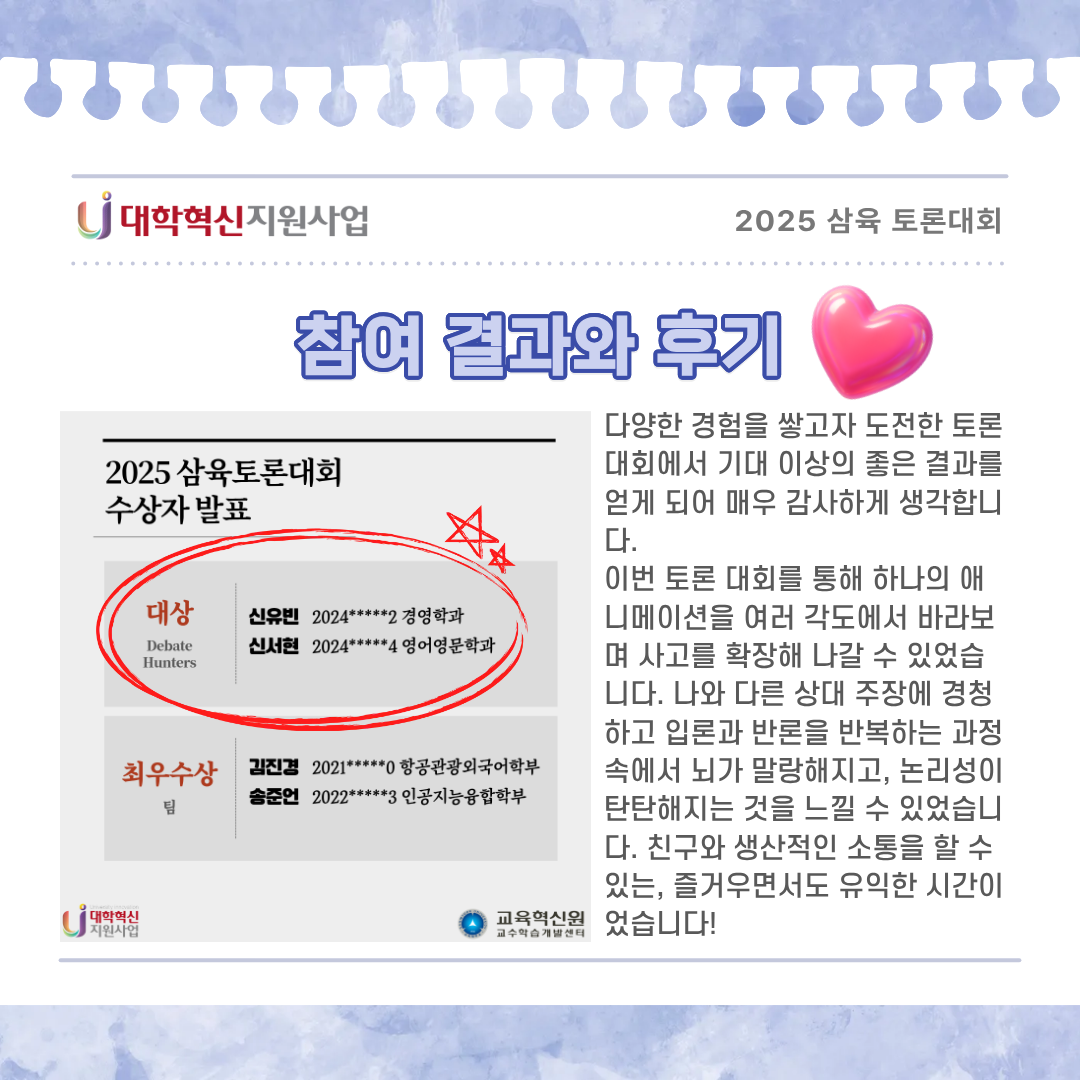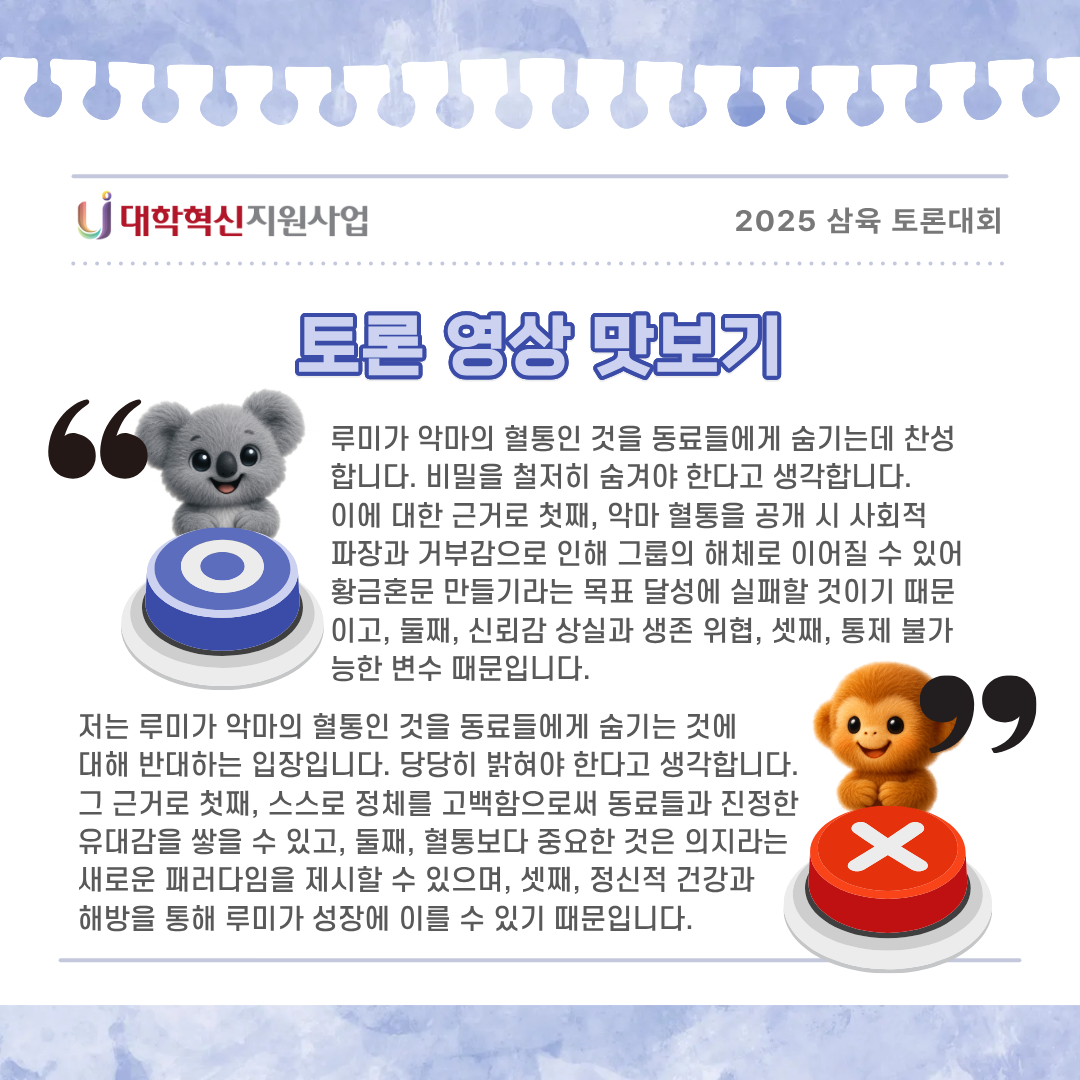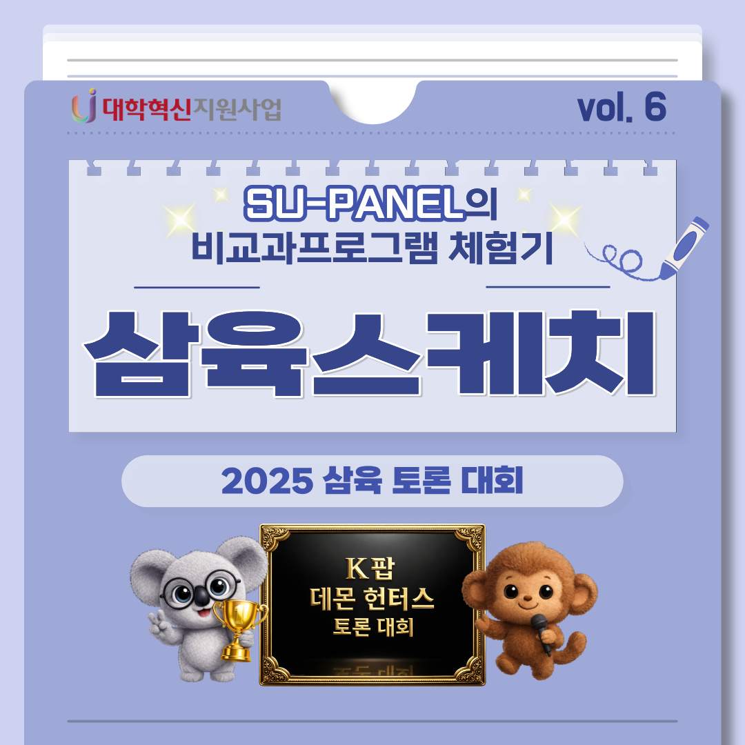 {삼육스케치 vol.6 : 2025 삼육토론대회} 본문 목록 이전글대학혁신지원사업단 재학생 홍보단 SU-PANEL 모집 26.02.20 다음글창업정부지원사업 준비 프로그램 26.01.19