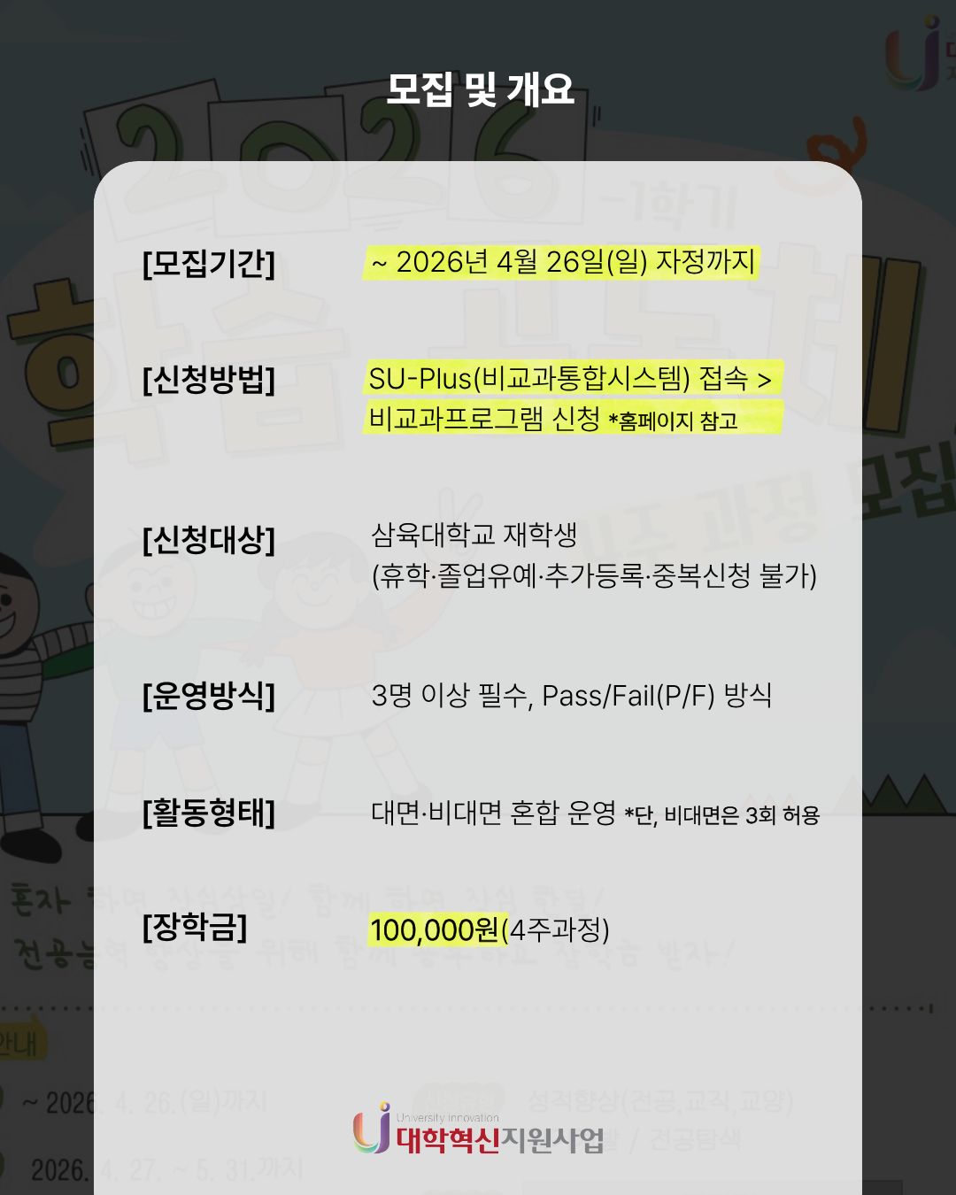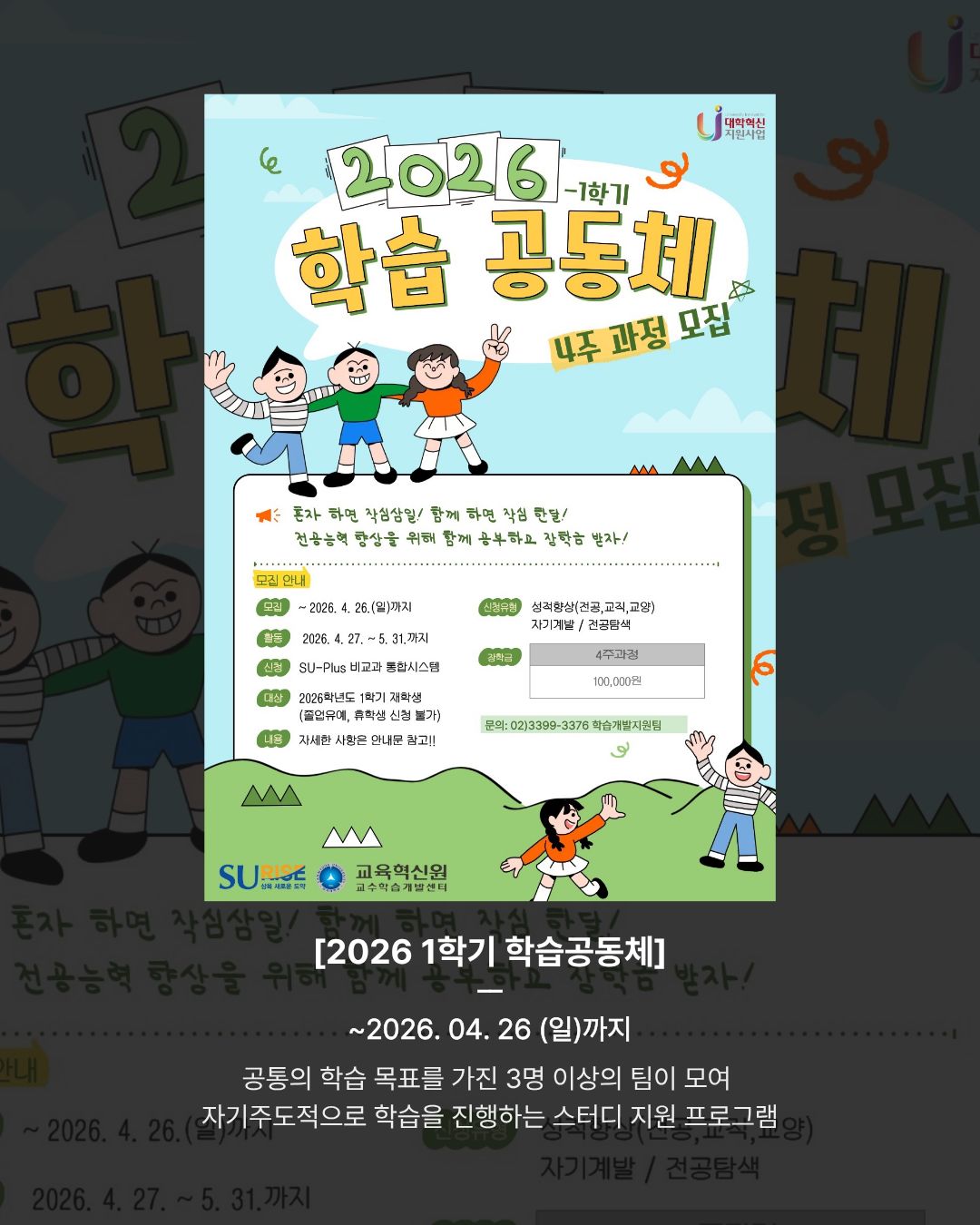 2026-1학기 학습공동체 4주 과정 모집 > 카드뉴스