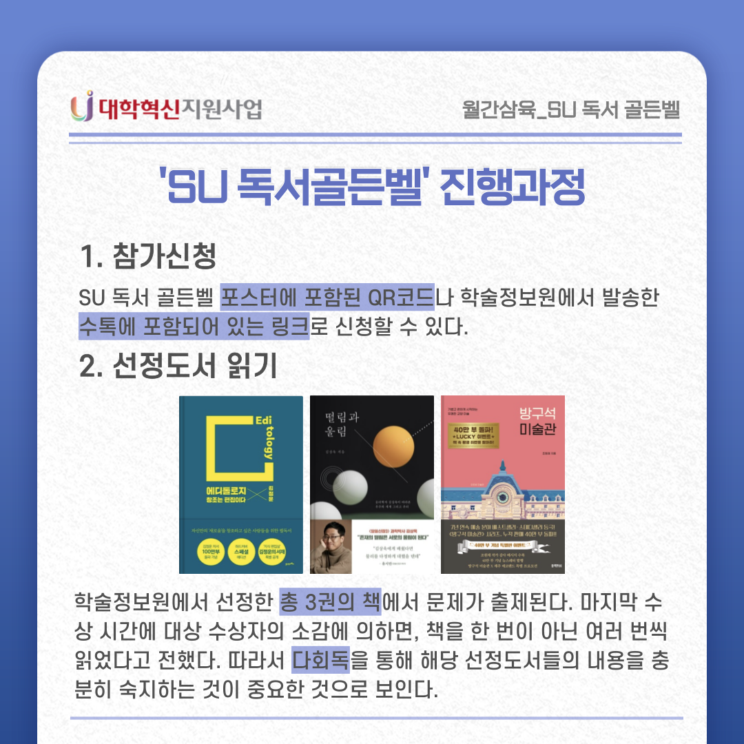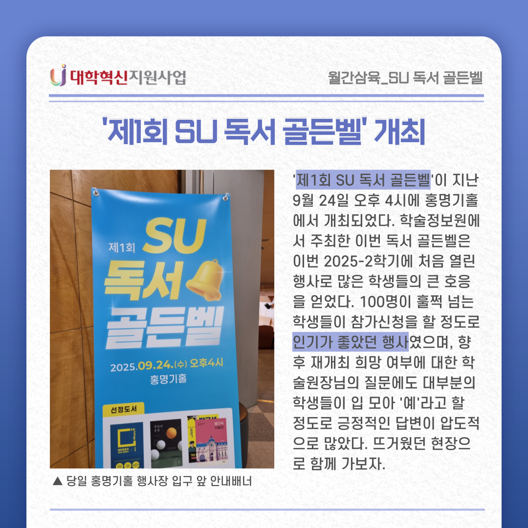 {월간삼육 vol.42 : 제1회 SU 독서 골든벨} > 월간삼육