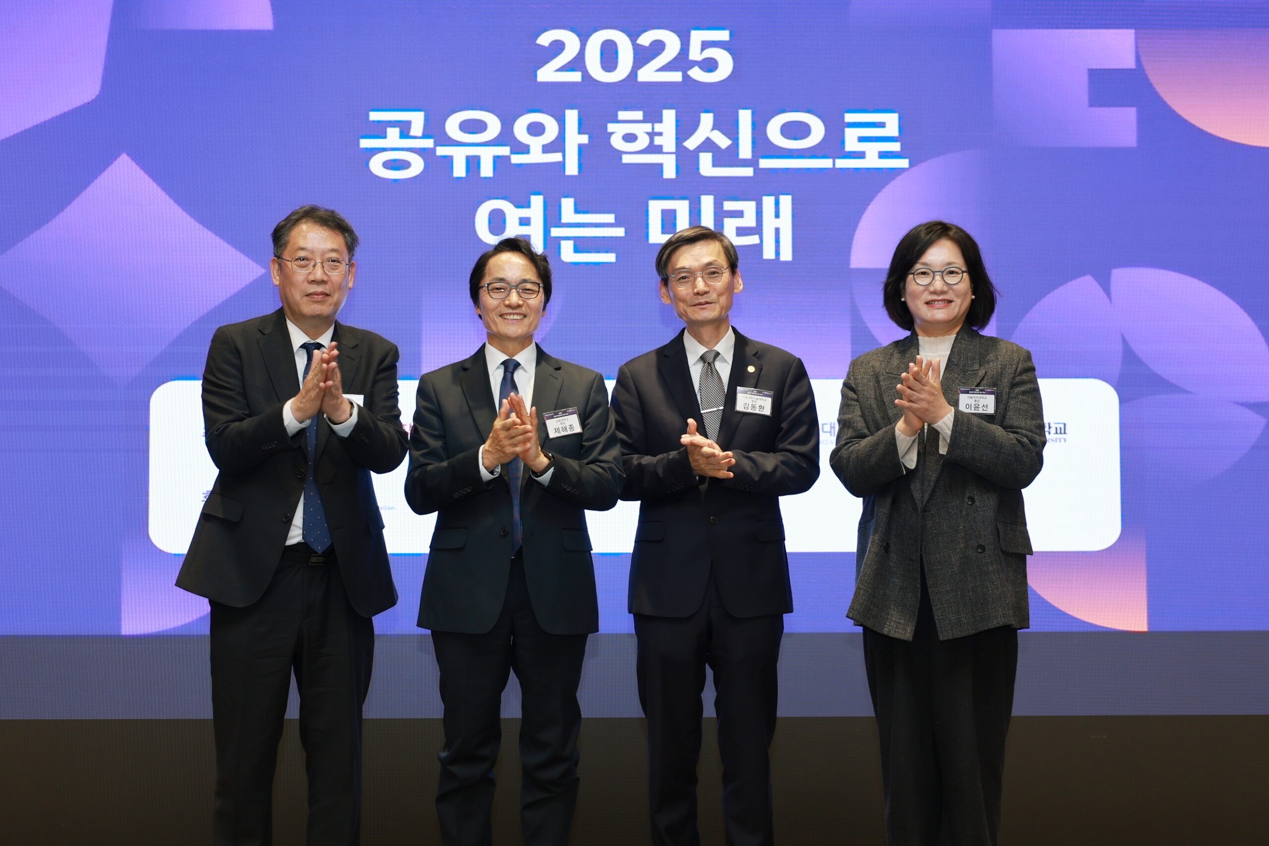 ▲ ‘2025 노원지역 4개 대학 연합 대학재정지원사업 성과포럼’에서 4개 대학 총장들이 기념촬영을 하고 있다. 왼쪽부터 윤도영 광운대 총장, 제해종 삼육대 총장, 김동환 서울과기대 총장, 이윤선 서울여대 총장.삼육대 제해종 총장은 환영사에서 “이번 포럼은 노원지역 4개 대학이 담장을 낮추고 지혜를 모아 공유와 협력의 새로운 교육 생태계를 만들어가는 출발점”이라며 “AI 시대를 맞아 기술 혁신과 함께 인간 중심 교육의 가치를 강화하는 것이 진정한 대학 혁신”이라고 강조했다. 이어 “대학 간 성과 공유가 일회성에 그치지 않고 혁신 문화로 정착될 수 있도록 지속적인 협력을 이어가겠다”고 밝혔다.
